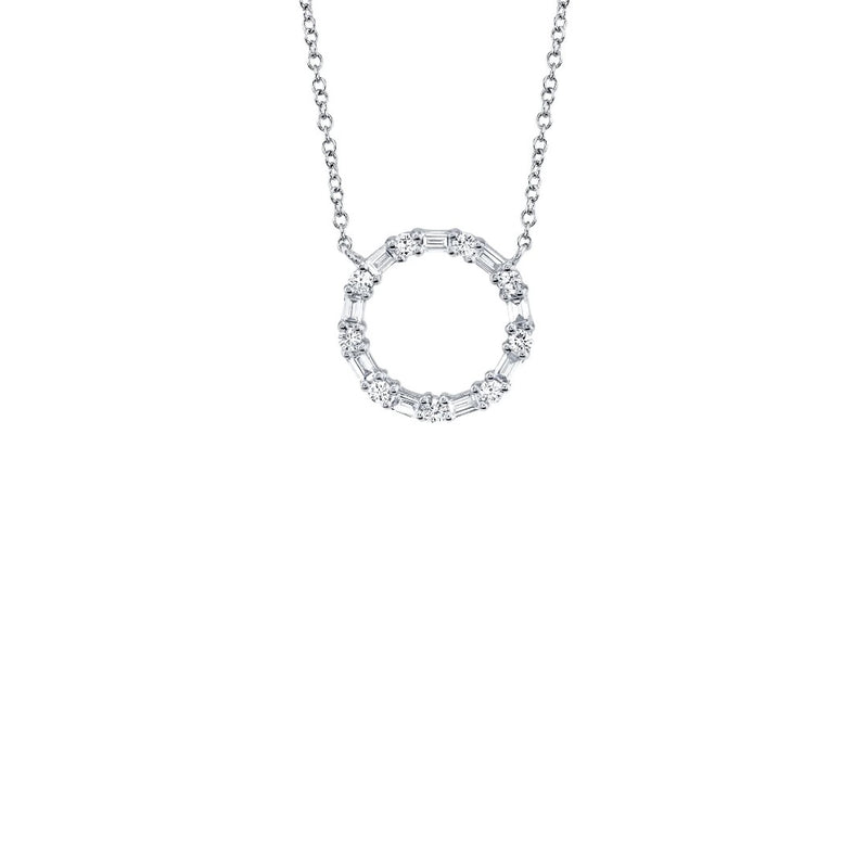 Shy Creation Baguette Diamond Open Circle Necklace