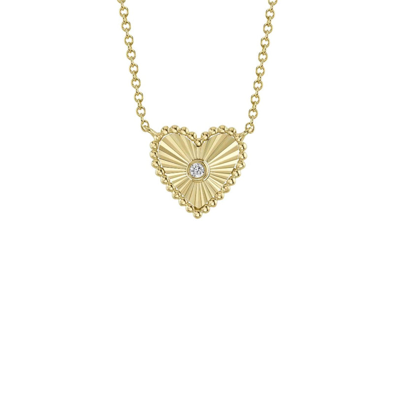 Indulge in luxury and allure with the Shy Creation Fluted Heart Necklace. This exquisite piece features a stunning diamond nestled within a delicately sculpted heart, elevating any look with elegant charm. Perfect for those who appreciate fine craftsmanship and timeless sophistication.