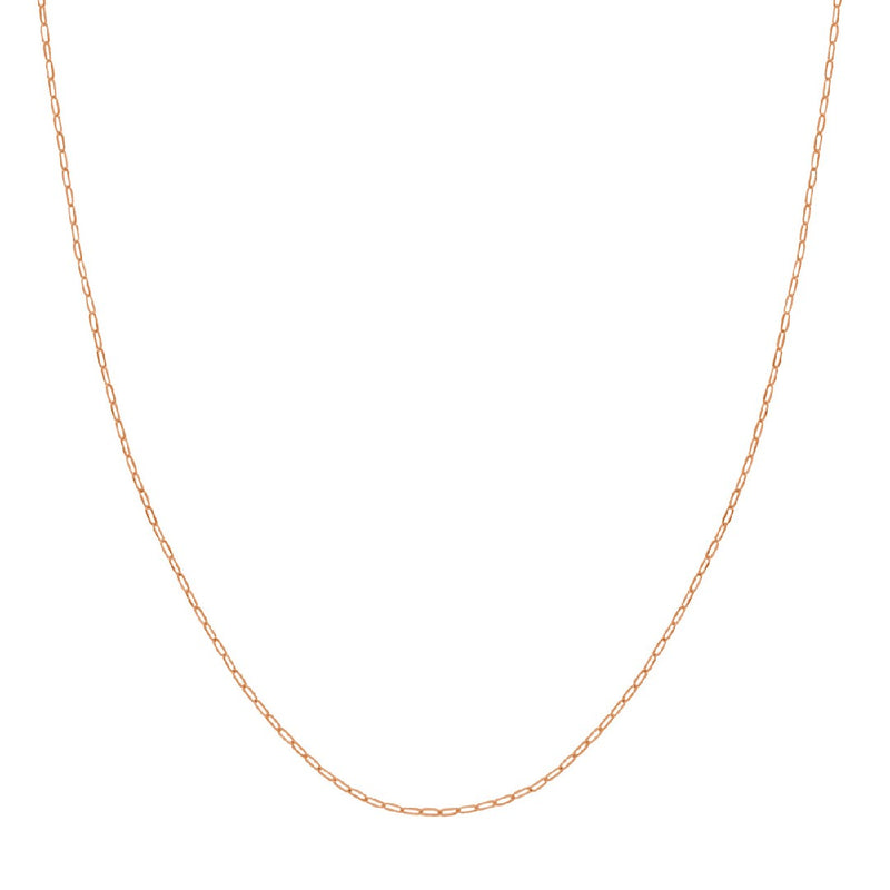 This rose gold paperclip chain's subtle elegance combined with a modern, minimalist design is sure to captivate. Crafted with precision, each link mirrors a tiny paperclip, adding a unique, playful touch to an otherwise classic piece.