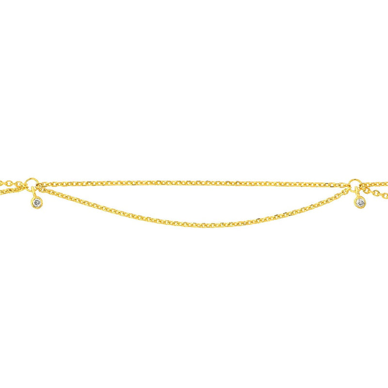 A true showstopper, this double strand anklet combines glimmering gold with sparkling diamonds! Wear this to the beach, date night...even a wedding!