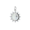 Gift Her Happiness! This is your chance to offer more than just a present; it's an opportunity to gift a symbol of joy. The Sterling Silver Mini Mother of Pearl Sun "Happiness" Charm boasts a dazzling mother of pearl stone at its heart, sparkled by a single white sapphire accent. Imagine her delight as she unveils this exclusive piece, a unique emblem of happiness. She deserves nothing less than a gift as special as she is.