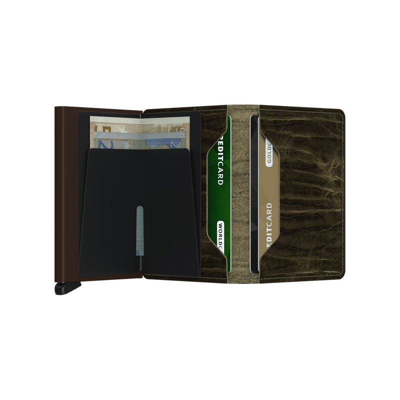 The Slim Wallet is a modern take on the classic billfold. With its slim profile it fits perfectly into every pocket. The generously cut leather holds at least an additional six cards, cash and business cards.