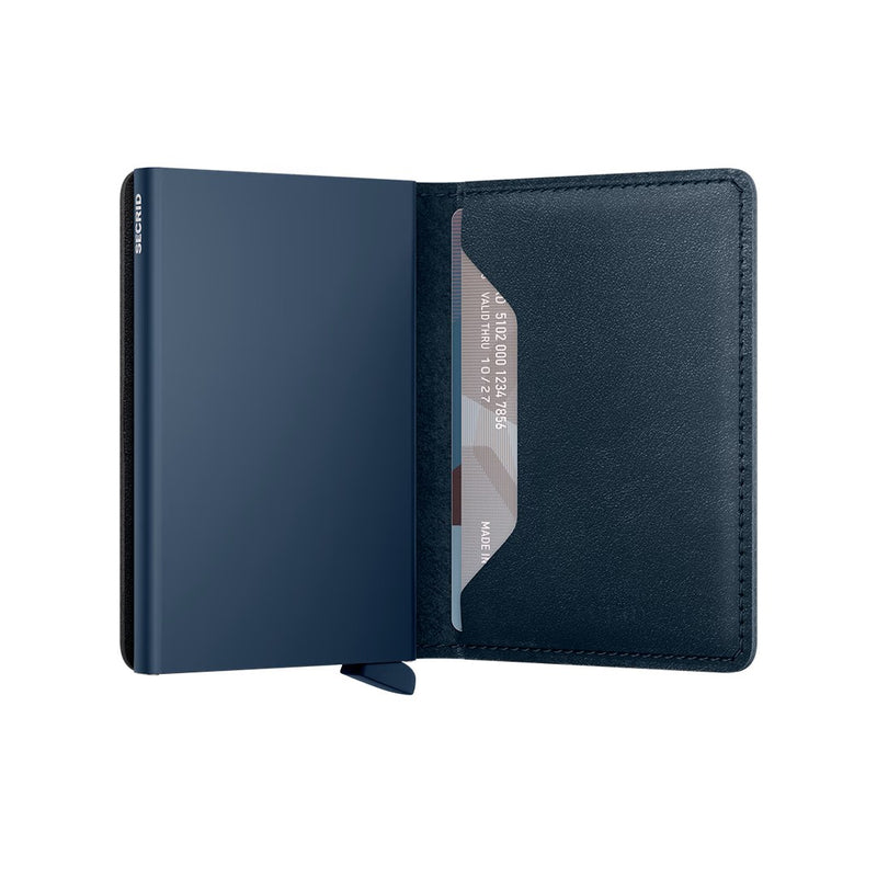 The patented mechanism allows you to slide out your cards with one simple motion, ready for immediate use. The aluminium protects from bending, breaking and unwanted wireless communication.
