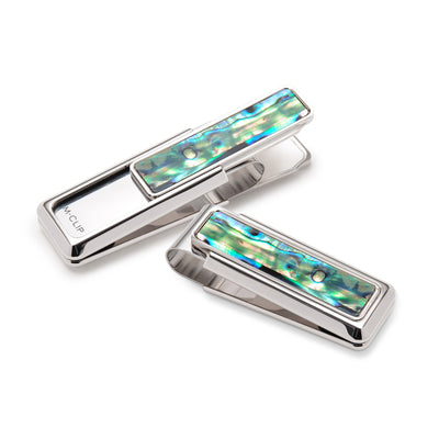 This money clip by M-Clip is an elegant version set with natural mother of pearl. Available in two styles, you either choose the solid inlay or inlay with engraving bar. This makes a great gift idea to give to your husband on your wedding day or to celebrate a special anniversary.