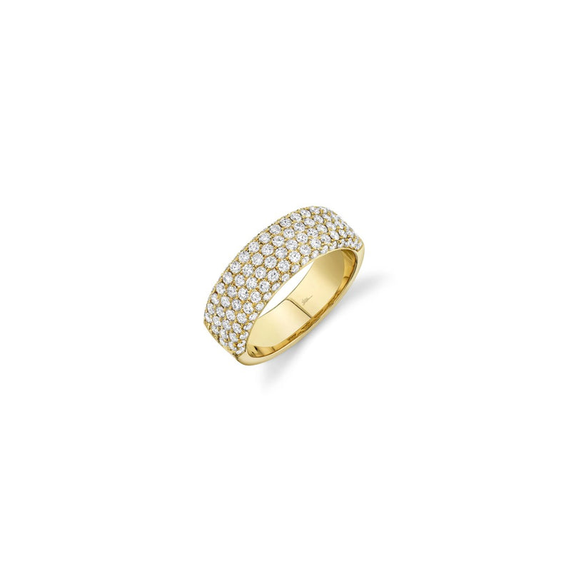 The Shy Creation Diamond Ring features a striking 7mm band adorned with sparkling diamonds, offering a bold yet elegant statement. Perfect for stacking or wearing alone, this ring blends timeless sophistication with modern design.