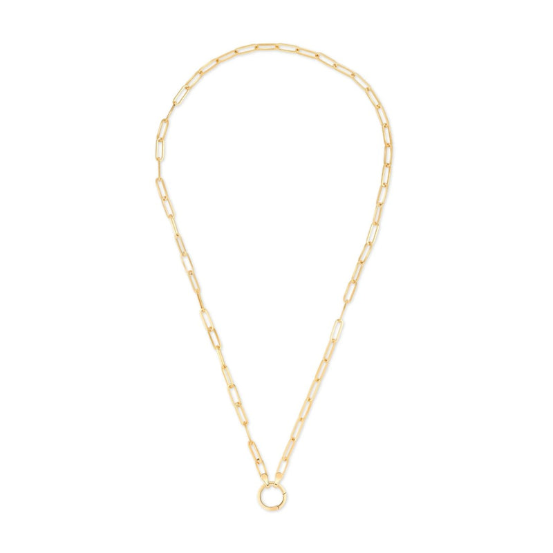 Anchor your necklace stack with this classic 14K gold Paperclip Chain. Wear it traditionally with the clasp in the back for a minimalist look, or turn the large spring ring clasp to the front and hang a charm off of it. The elongated links are flattering on any neckline. Available in two lengths for customized stacking, you'll reach for this gold Paperclip Chain constantly.