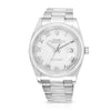 This Oyster Perpetual Datejust 36 in Oyster steel features a white dial and an Oyster bracelet.