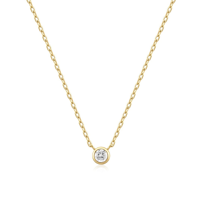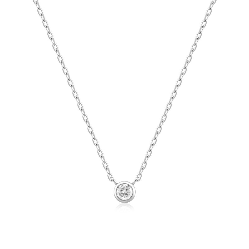 An elevated classic to add to your everyday jewelry rotation, this necklace is rhodium-plated gold sterling silver with a round cut cubic zirconia stone in a bezel setting. Stack it up with other chains or wear it alone, you will definitely refresh your daily styles.