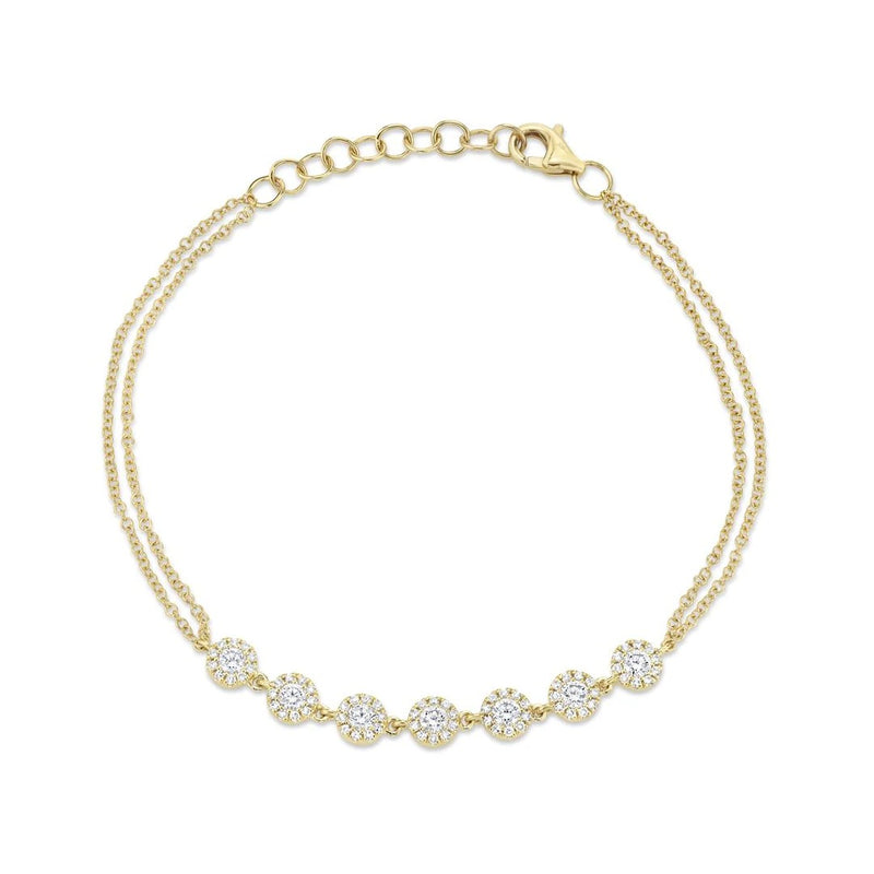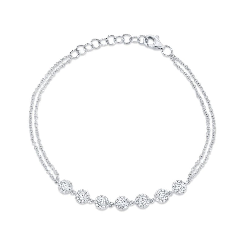 The Shy Creation Pave Diamond Circles Bracelet exudes a timeless elegance that gracefully adorns the wrist. This exquisite piece features interconnected circles, delicately paved with shimmering diamonds, reflecting light with every movement. Its understated glamour makes it a versatile addition to any collection, seamlessly transitioning from daywear to evening sophistication.
