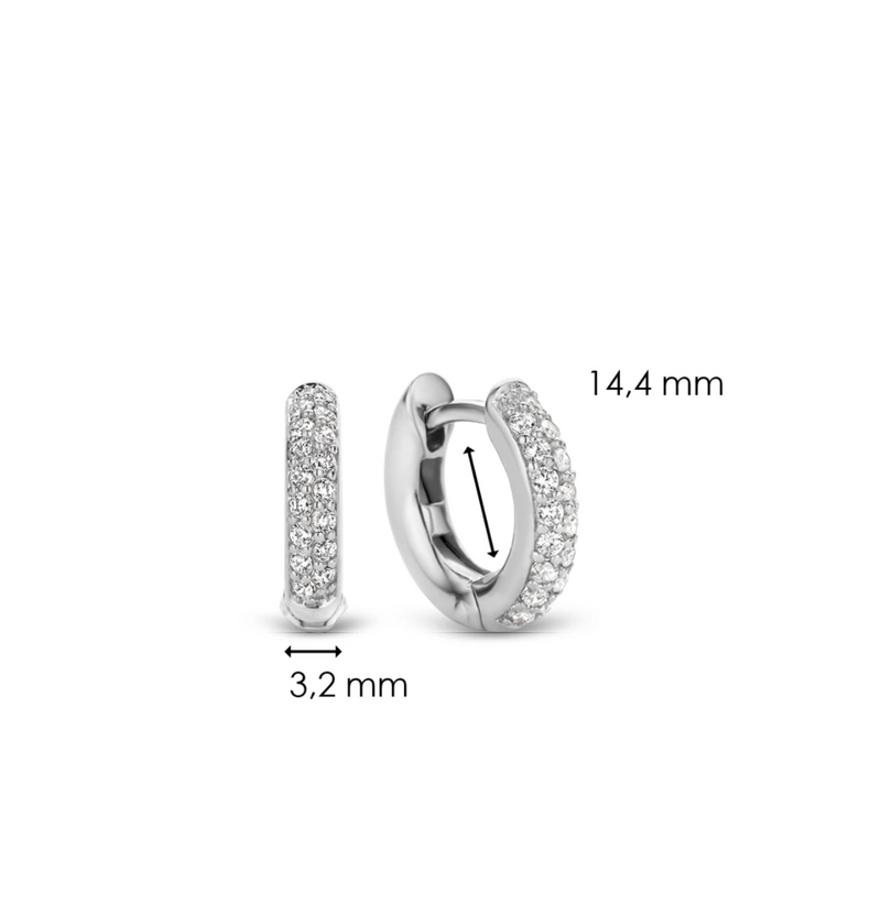 These TI SENTO - Milano earrings are made from rhodium plated sterling silver and pavé set with brilliant-cut cubic zirconias laid out in two rows. The earrings can be worn alone, or are suitable for wearing with ear charms in keeping with the TI SENTO Mix & Match concept.