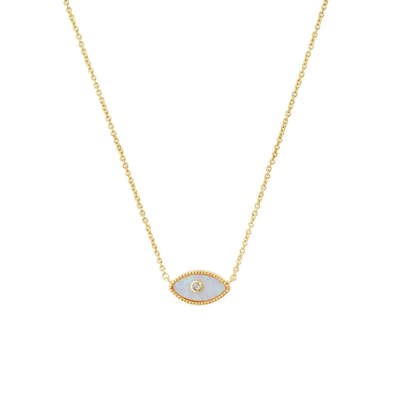 Add some sparkle to your day with this stunning Opal Evil Eye Necklace! A unique combination of classic design and modern style, its opalescent finish makes it a stand-out piece. Make a statement with this fashion-forward twist on a timeless classic.
