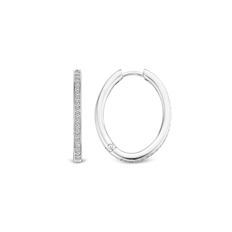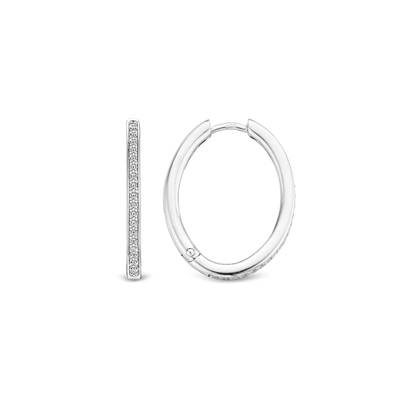 Ti Sento Milano Silver Oval Zirconia Hoops