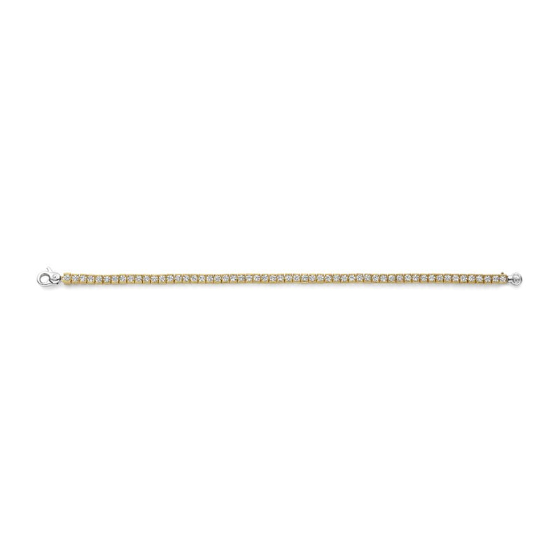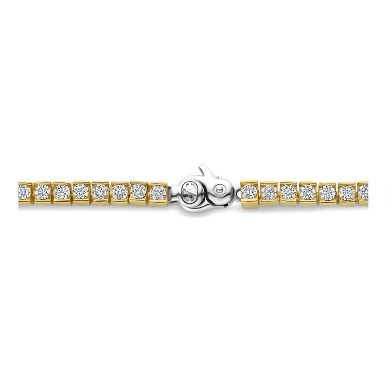 Add a touch of golden elegance with the Ti Sento Milano Round CZ Tennis Bracelet. Featuring a continuous line of brilliant round cubic zirconia, this bracelet radiates timeless beauty and refined sparkle. Whether worn alone for a sophisticated statement or stacked with other bangles and bracelets, this tennis bracelet is a versatile must-have for your collection.