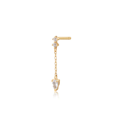 Update your ear party with a whimsical drop stud crafted with round and pear-cut stones. Shimmering gold chain and white sapphires shine in this dreamy design.