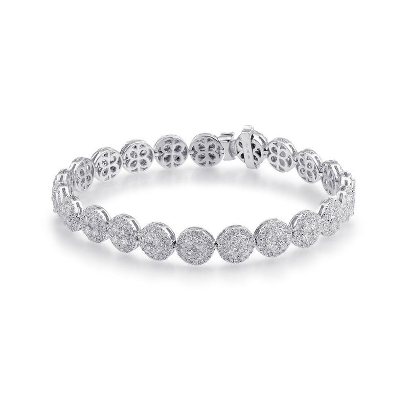 Intricately crafted with precision and passion, our diamond bracelet is a true testament to timeless elegance. Possessing over 6 carats of meticulously selected diamonds, each gemstone is cradled in an exquisite 18k white gold setting that has been fashioned by hand. The attention to detail in this design is remarkable, with every diamond secured in perfect harmony to create an overall effect of dazzling perfection.