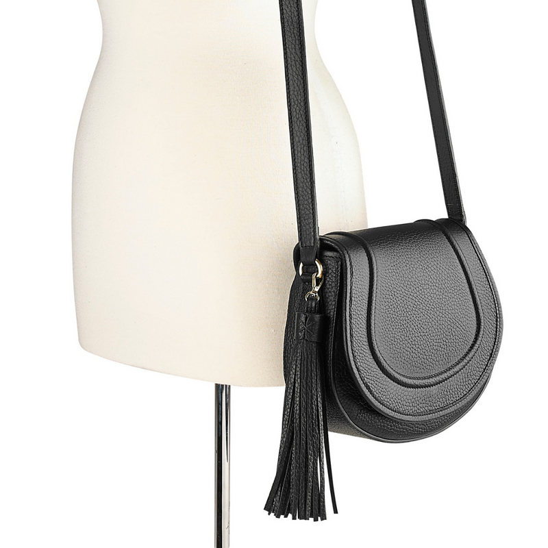 Curvaceous detailing on our new saddle-shape, hand crafted in our pebble grain leather. Matching detachable swingy tassel and adjustable strap, this modern-day bag will carry you stylishly through the week.