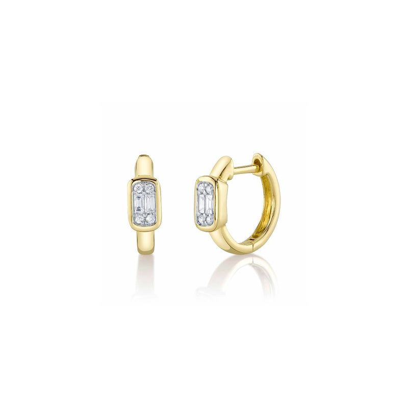 Shy Creation Baguette Diamond Bezel Huggie Hoops