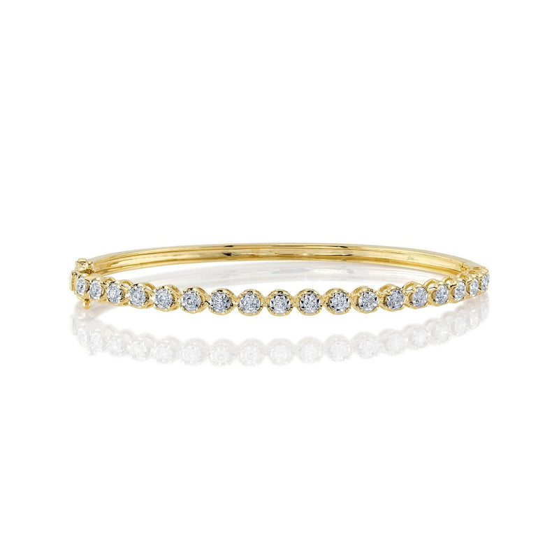 Indulge in luxury with the Shy Creation Diamond Bangle Bracelet. This exquisite piece features a stunning diamond design that will elevate any outfit. Handcrafted with precision and attention to detail, it exudes elegance and exclusivity. Perfect for those who appreciate sophistication and refinement.