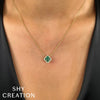 This exquisite emerald and diamond clover necklace by Shy Creation will elevate any look. Handcrafted with luxurious materials, the stunning clover design is both elegant and symbolic, representing luck and good fortune. Make a statement and add a touch of sophistication to your jewelry collection with this stunning piece.
