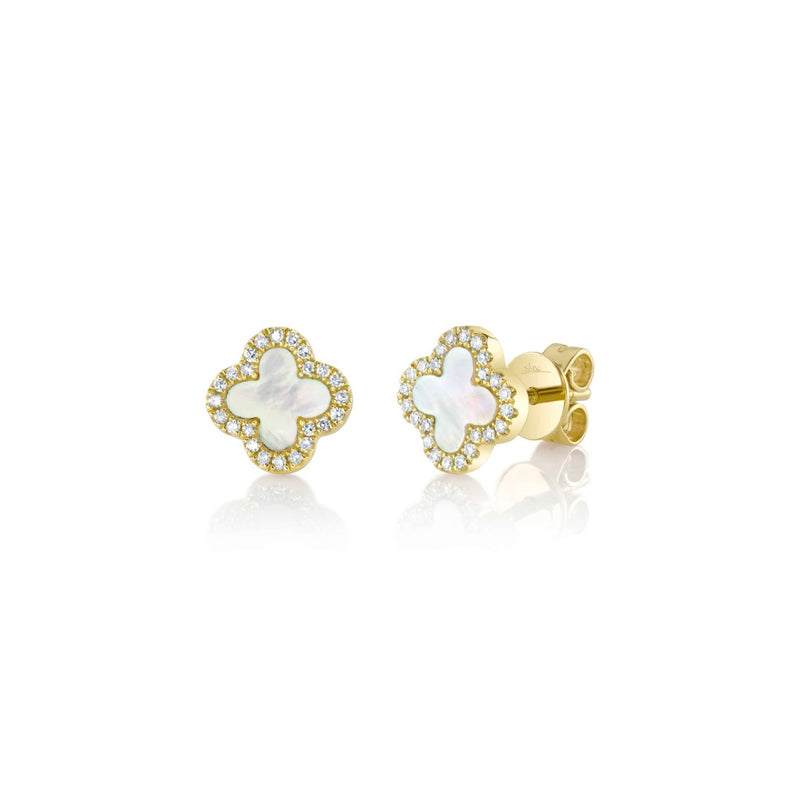 Shy Creation Mother of Pearl and Diamond Clover Earrings