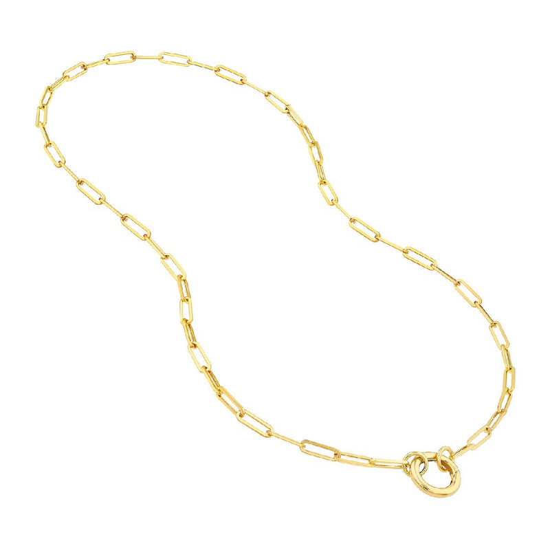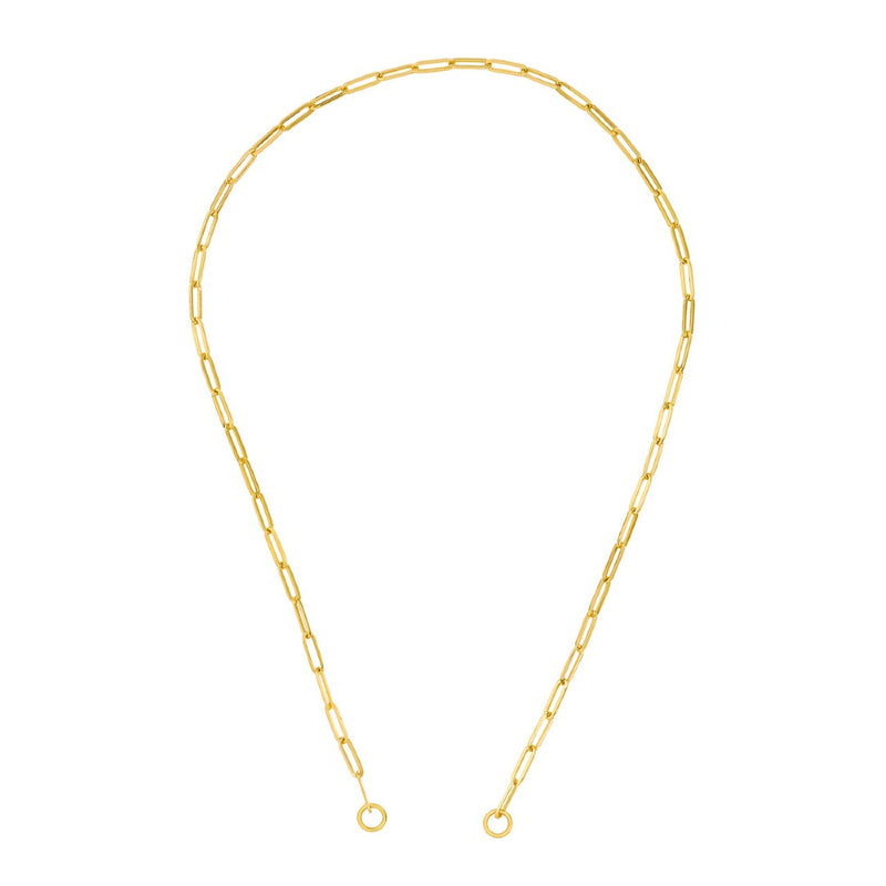 The Split Hollow Paperclip Chain's design is both innovative and stylish, featuring oversized jump rings and sleek end caps that serve as versatile connection points. These unique elements allow for the addition of charm clips and various charms, enabling you to personalize your accessory. Mix and match to suit your style or occasion, breathing new life into your jewelry collection with each custom creation.