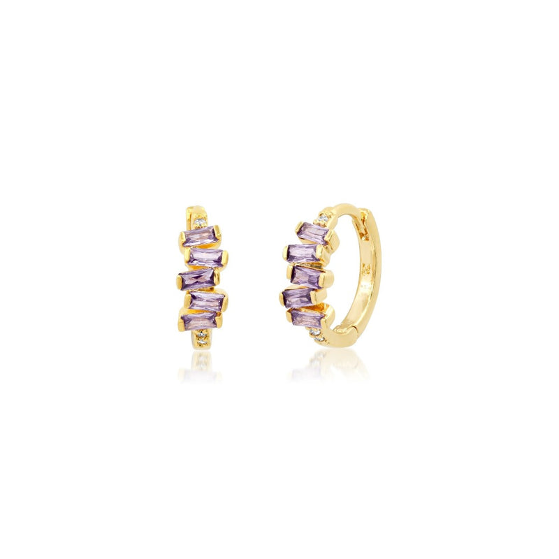 Stacked Lavender Baguette Huggies