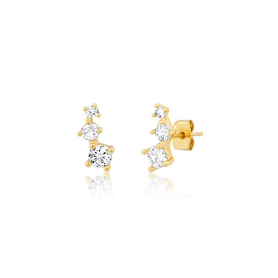 Be bold with this exquisite Three-Stone CZ Crawler! Featuring three clear cubic zirconia stones crawling up your ear, this piece of jewelry is sure to turn heads and take your look to the next level.