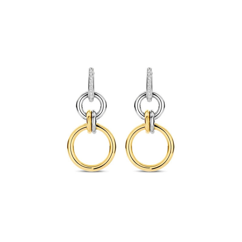 The Ti Sento Milano Interlinked Hoop Earrings blend bold design with modern elegance. Crafted from sterling silver, they feature interlocking yellow gold-plated and silver links, anchored by a pavé-set zirconia hoop for added sparkle. Versatile and eye-catching, they're nickel-free, hypoallergenic, and perfect for any occasion.